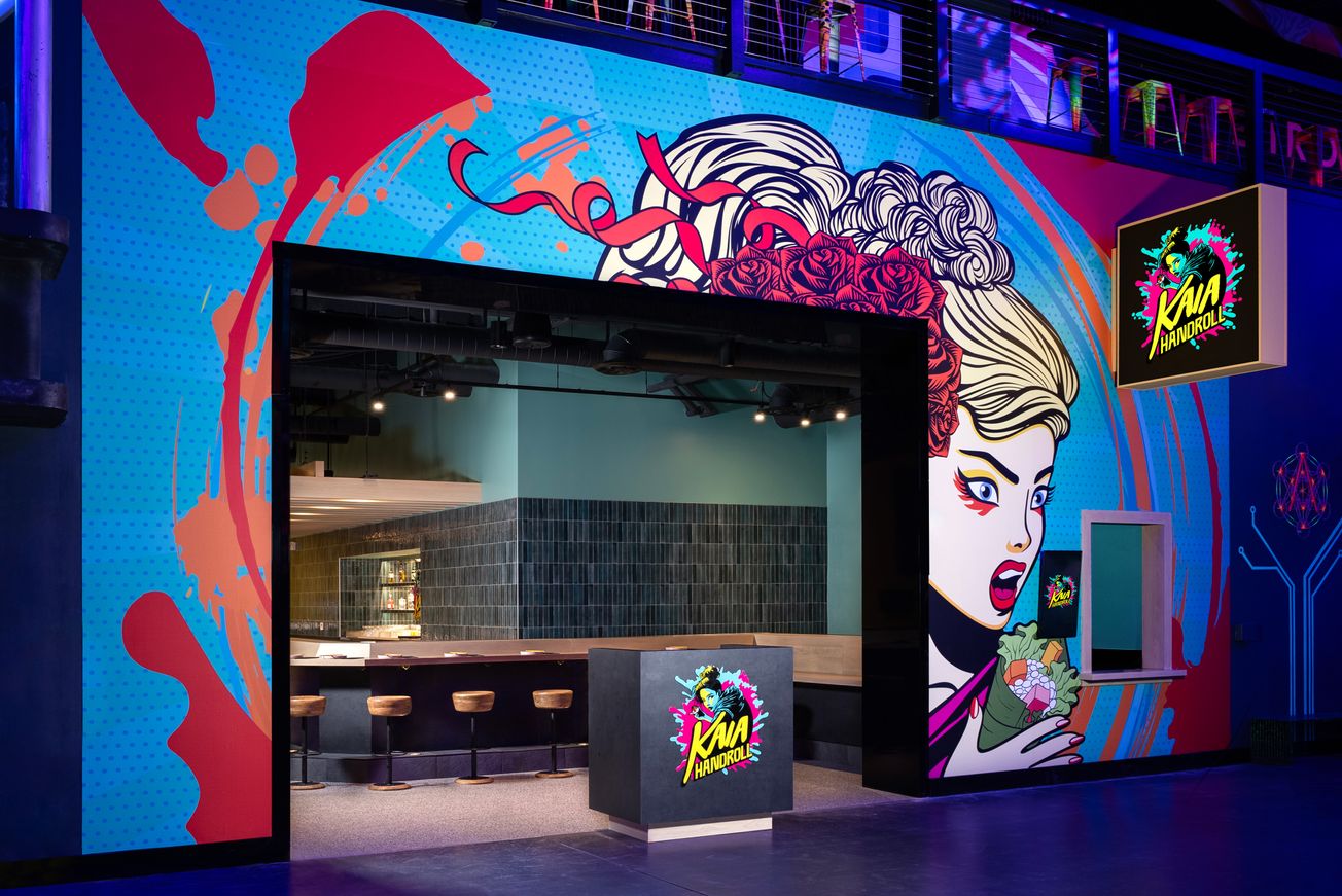 Kaia Handroll joins AREA15’s existing lineup of food and beverage offerings, including The Beast by Todd English, Lumin Café by Elizabeth Blau inside Illuminarium, 20,000 Leagues Under the Sea at Lost Spirits Distillery, Datamosh inside Omega Mart, LIFTOFF Bar & Ride and Oddwood Bar, Dream Weaver Milk & Boba Bar and Rocket Fizz candy shoppe.